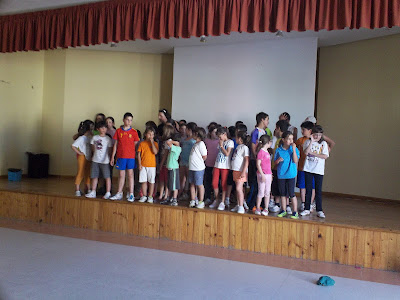 Eran las 11:30 de la mañana cuando apareciamos por la puerta del colegio. Entramos al cole, nos aseamos, nos comimos el almuerzo y jugamos un rato en el patio, para compartir un rato con el alumnado de infantil, que nos acompañó hasta el algo de "la muela" para jugar un rato con nosotros en los columpios.