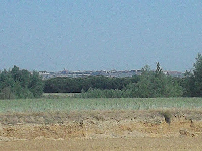 Tras encontrarla, nos dispusimos a andar por el continuo subi-baja que separa la citada localidad de Siete Iglesias, de la siguiente, Castronuño. Un camino bien asentado y ancho fue acompañandonos, a nuestros lados veíamos campos de cultivo ( trigo, cebada, girasol,...) de secano y algún que otro campo de regadío, con sus enormes pibots dispuestos a dosificar el agua necesaria para los mismos.